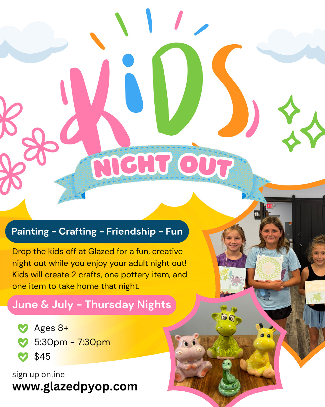 Kids Night Out at Glazed is a creative, supervised evening where kids get to explore their artistic side in a safe and engaging environment.