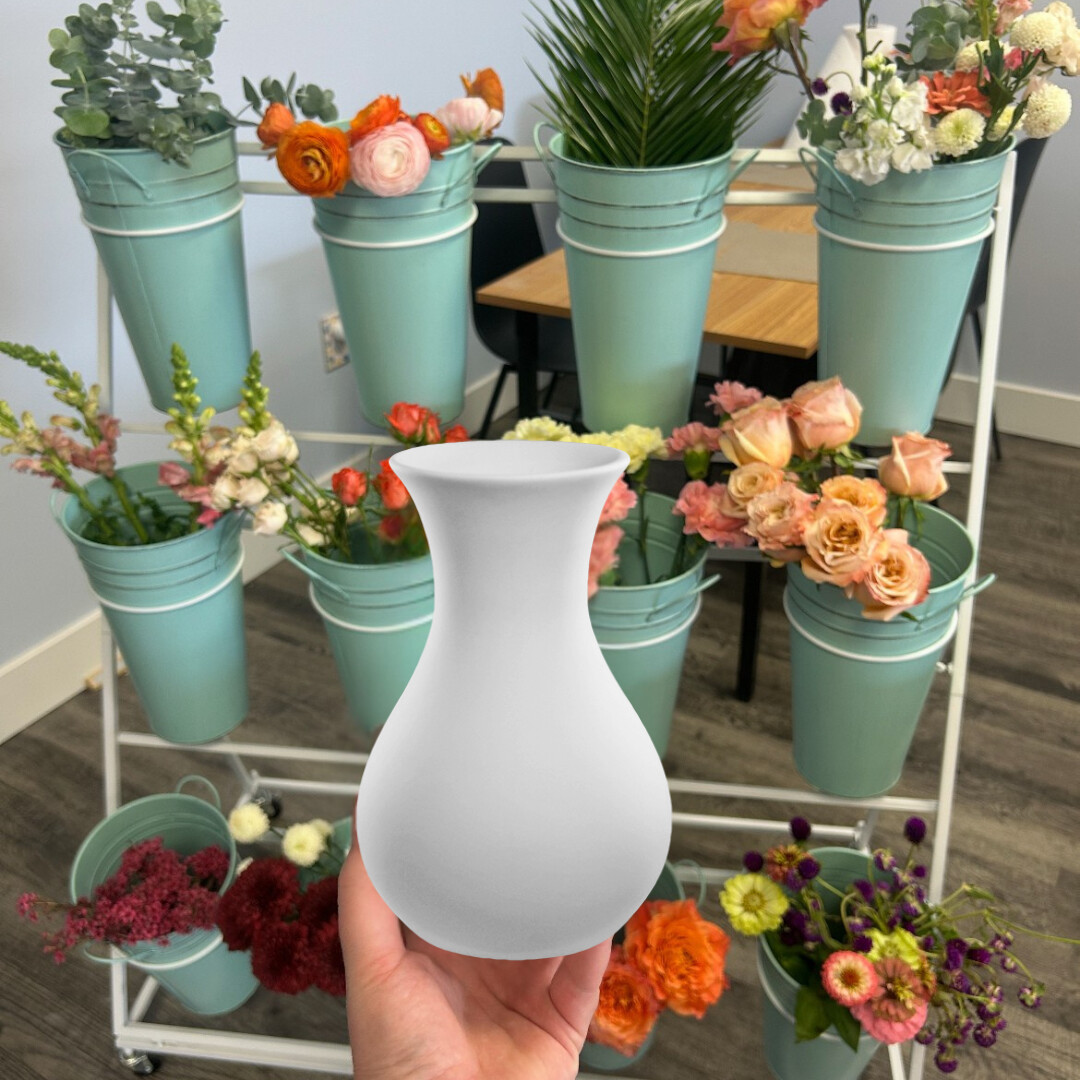 Each ticket includes one medium-sized ceramic vase to paint and personalize, along with a customizable floral bouquet beautifully provided by Juniper Blooms. Our artists will walk you through the painting process, making this experience fun and approachable for all skill levels.